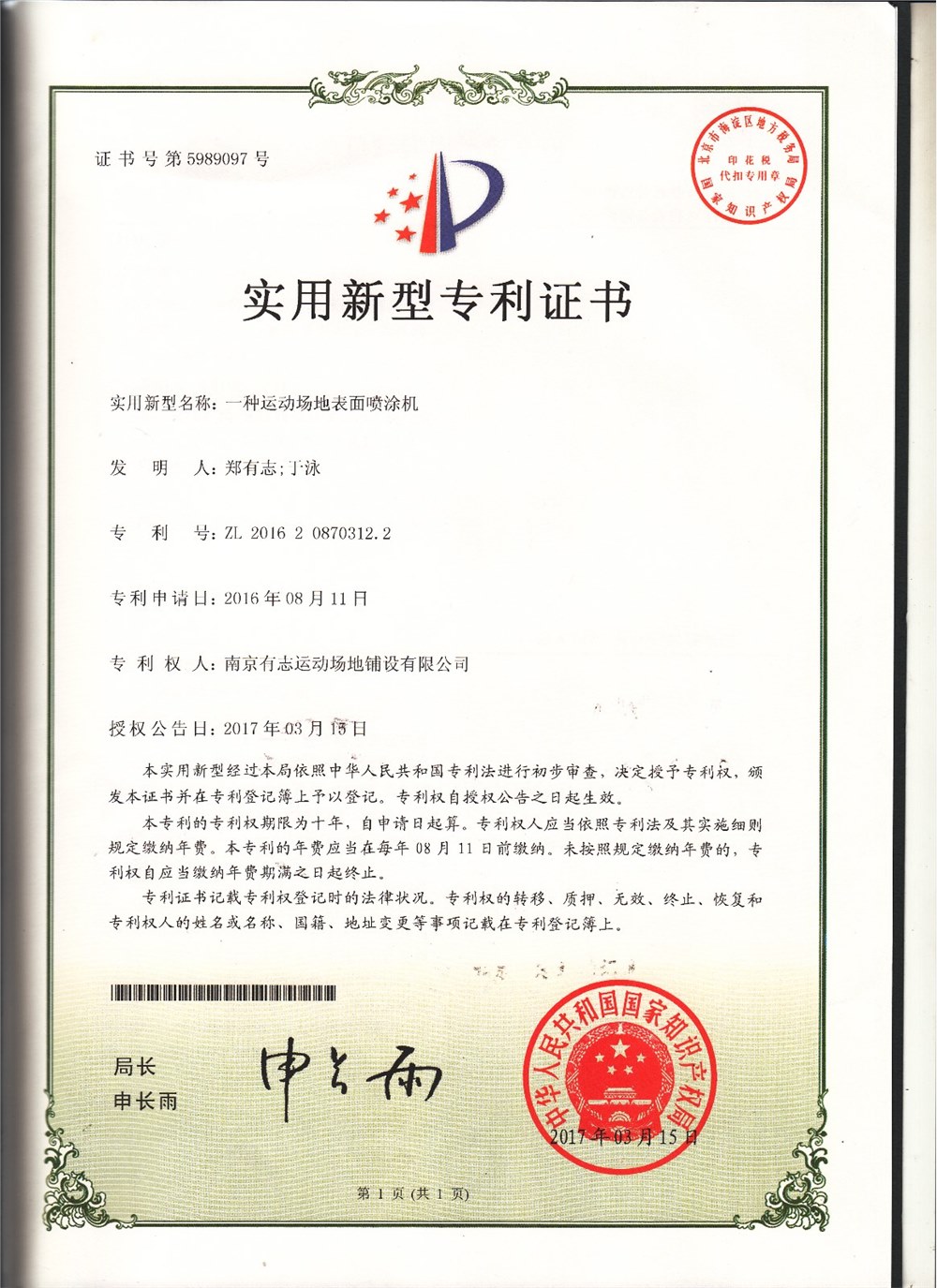 实用新型专利证书